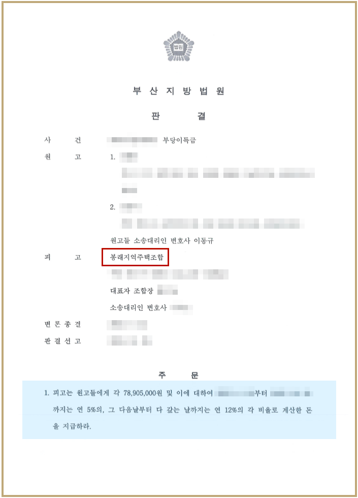 위 사건에서 봉래지역주택조합은 관련사건들에서 조합이 주장하여 조합원의 청구가 기각된 다수의 판결을 증거로 제출하기도 했습니다